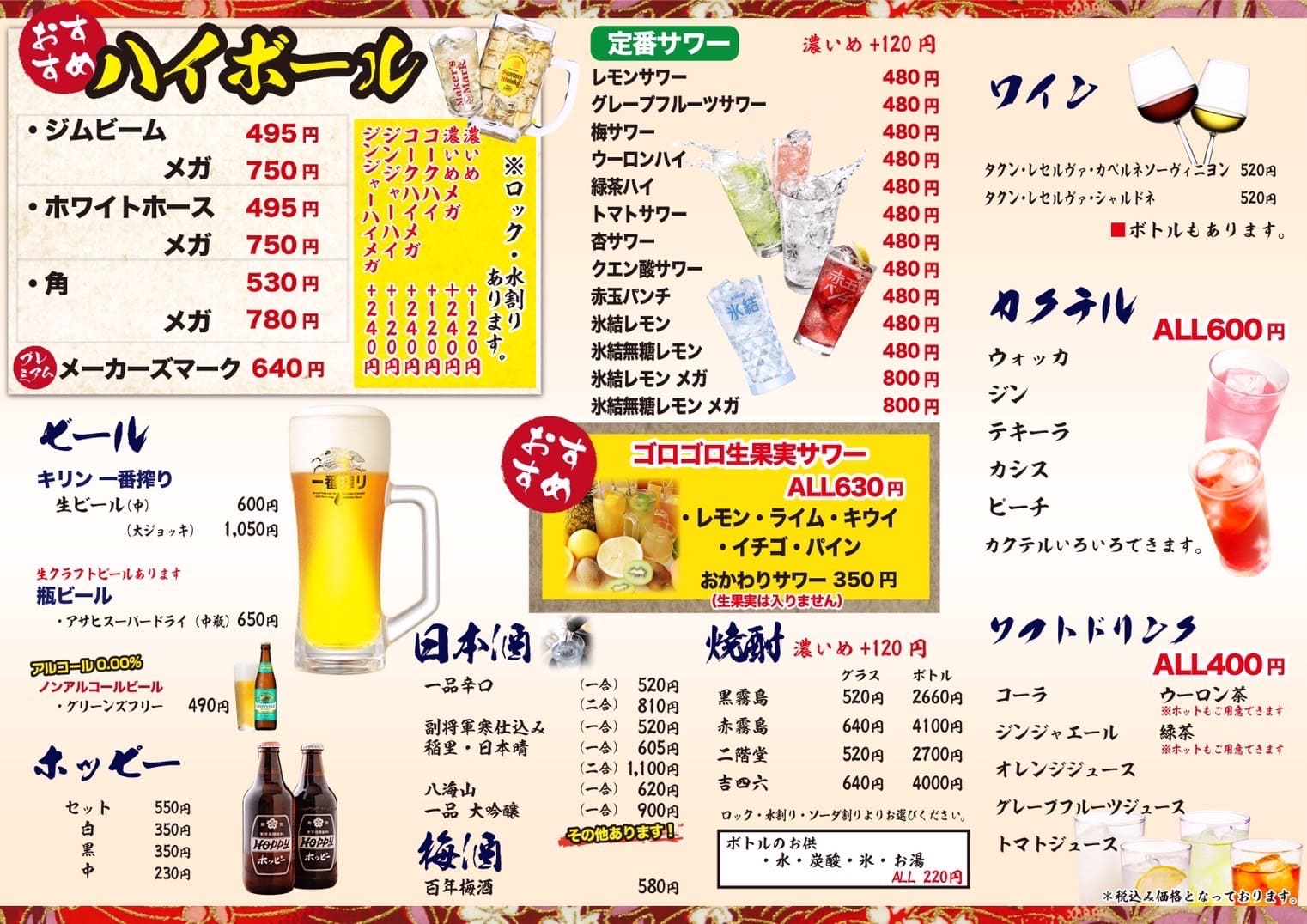 ドリンクメニュー(税込)